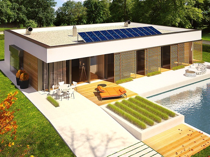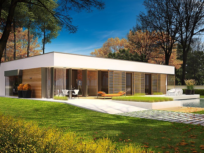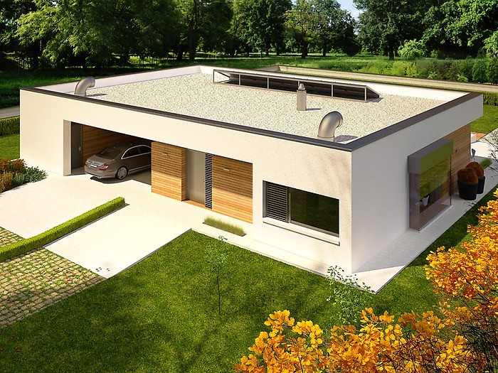 El proyecto de la casa final EX 7 es una propuesta perfecta para los amantes del diseño moderno y hogares de bajo consumo de energía . El edificio fue diseñado en el espíritu del minimalismo modernista, por lo tanto, se corresponde con las últimas tendencias arquitectónicas. Las formas cúbicas y el techo sencillo, así como la blancura blanca y las líneas simples añaden un toque de elegancia. El aspecto crudo se rompe con accesorios de madera. Los acristalamientos grandes y asimétricos brindan acceso a la luz solar interior y revelan hermosas vistas de la vegetación del jardín. El garaje en el bloque del edificio con la entrada desde la parte delantera acomodará dos automóviles de pasajeros. Una atracción enorme es la espaciosa terraza contigua a la fachada posterior, que desempeña un papel recreativo. Podrás descansar en los días soleados, disfrutando de la calidez.